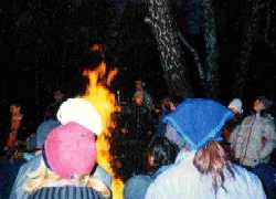 - Программа всегда шла от ребят, что им было интересно. Могу заметить только одну тенденцию: для новичков, кто впервые на сборы попадает всегда были игровые программы, а потом людей начинает привлекать уже другое: коллективные камерные дела, большой круг, разговор при свечах, "огоньки" - самое ценное было здесь. Конечно, игры спортивные, какие-то трудовые дела. Если сборы на базе, обязательно делали трудовой десант: выбивали пыль, мыли комнаты, осенью заклеивали, утепляли окна, зимой снег чистили. Когда деревенька рядом - там ведь пожилые люди живут - ребята им помогали, дрова кололи. Потом эти трудовые десанты стали уходить в небытие. Поколение новое, другое. Всегда было очень много психологических тренингов. Обязательно было дело, которое давало ребятам новые знания. Так как у нас в школе было много интересных людей, которые могли многое дать, очень качественная всегда была "вертушка" - мастерские. Ребята были даже более "продвинутыми", чем учителя, в валеологии, например, когда это направление только появилось. Татьяна Ивановна Новикова - у неё неординарный взгляд творческий - многому учила.